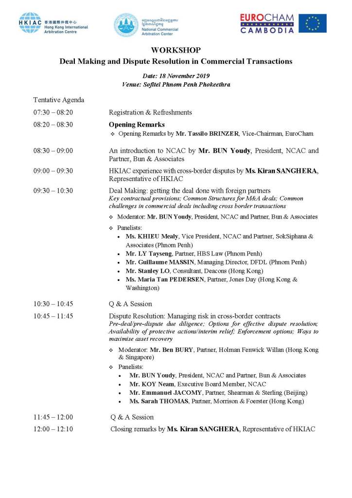 សិក្ខាសាលាបានប្រព្រឹត្តទៅនៅថ្ងៃទី ១៨-វិច្ឆិកា-២០១៩ នាសណ្ធាគារសូហ្វីតែលភូគីត្រាភ្នំពេញ ដែលចូលរួមសហការដោយ និងមានរបៀបវារៈដូចខាងក្រោម The workshop was conducted on November 18th, 2019 at Phnom Penh Sofitel Phoukitra Hotel, which had been jointly organized by and deterrmined an agenda as follow៖