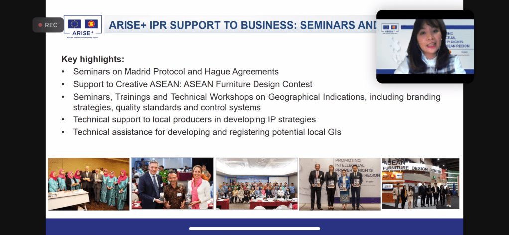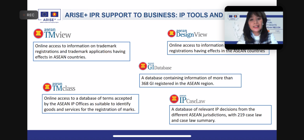 សិក្ខាសាលាប្រព្រឹត្តិទៅនៅថ្ងៃទី២៨-កក្កដា-២០២១ ក្រោមការរៀបចំដោយសហប្រតិបត្តិការរវាងនាយកដ្ឋានកម្មសិទ្ធិបញ្ញា ក្រសួងពាណិជ្ជកម្មកម្ពុជា និង ASEAN Intellectual Property Rights (អេរ៉ាយផ្លាស់ ARISE+) តាមរយៈប្រព័ន្ធហ្សូមពីរាជធានីភ្នំពេញ និងមានរបៀបវារៈដូចខាងក្រោម៖