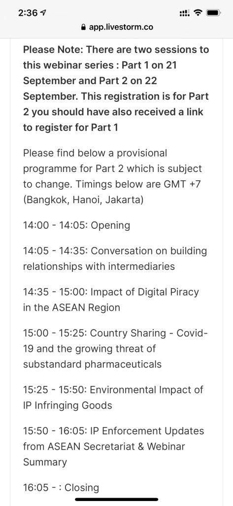 ផ្នែកកម្មសិទ្ធិបញ្ញា Intellectual Property Section, Consultant Service Office for ADR & Litigation. សិក្ខាសាលាស្តីពីការអនុវត្តដោយបង្ខំកម្មសិទ្ធិបញ្ញានៃអាស៊ាន-អង់គ្លេស The UK-ASEAN IP Enforcement Webinar. 22/09/2021 OVT LAW-Professional in ADR & Litigation. Leave a comment សិក្ខាសាលាបានប្រព្រឹត្តទៅនៅថ្ងៃទី២២-កញ្ញា-២០២១ តាមរយៈថ្នាលប្រព័ន្ធបច្ចេកវិទ្យាពត៌មានពីប្រទេសអង់គ្លេស។ OVT Law-Professional in ADR & Litigation; Phone: (+855) 12 888 025; 016 999 027; 097 5888 025; Email: ovt.arbitrator@gmail.com; Website: www.ovtlaw.comTweet Click to print (Opens in new window) Print Click to share on Telegram (Opens in new window) Telegram Like Loading...