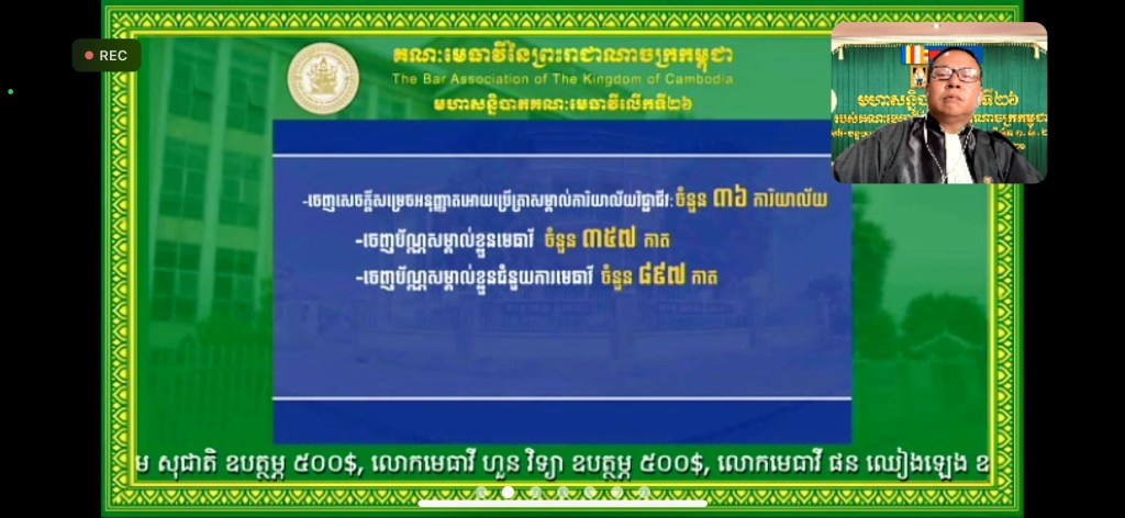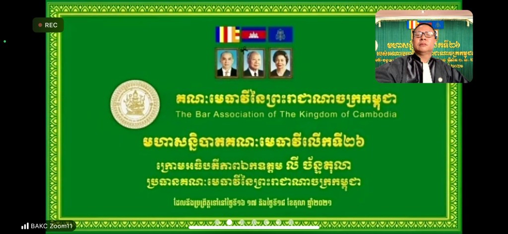 មហាសន្និបាតលេីកទី២៦នេះបានប្រព្រឹត្តទៅនៅថ្ងៃទី១៦-១៨/តុលា/២០២១ តាមរយៈប្រព័ន្ធហ្យូមនិងការបោះឆ្នោតជ្រេីសតាំងសមាជិកក្រុមប្រឹក្សាគណៈមេធាវីអាណត្តិទី១០ចំនួន៣៣រូបពីក្នុងចំណោមបេក្ខជនឈរឈ្មោះចំនួនច្រេីនជាង១០០នាក់នៅទីស្នាក់ការរបស់គណៈមេធាវីនៃព្រះរាជាណាចក្រកម្ពុជា។ បញ្ជីឈ្មោះបេក្ខជនទាំងនោះដូចមានភ្ជាប់ជាមួយ ៖