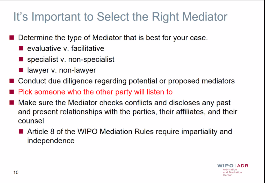 III. Intellectual Property and Technology Mediation: Conduct of a Mediation and the Role of the Different Actors