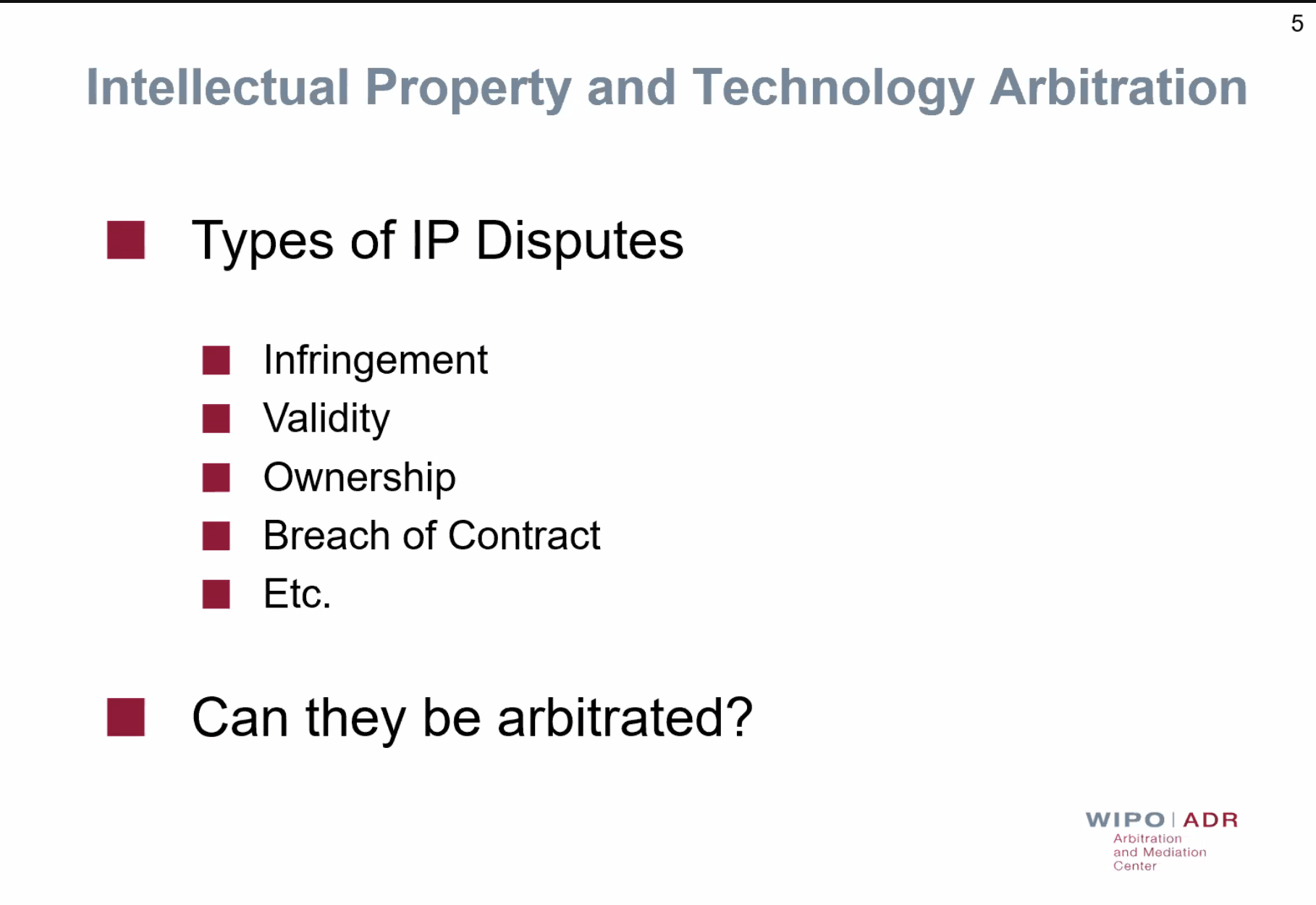 III. Intellectual Property and Technology Arbitration