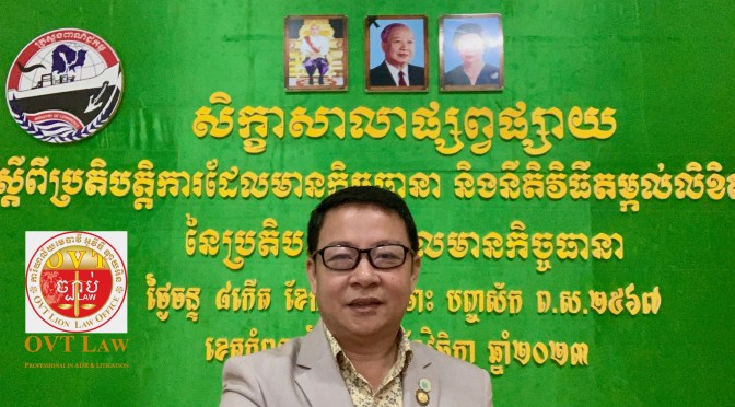 សិក្ខាសាលាស្តីពីប្រតិបត្តិការដែលមានកិច្ចធានា និងនីតិវិធីតម្កល់លិខិតជូនដំណឹងរបស់វា បានប្រព្រឹត្តទៅនៅថ្ងៃទី២០-វិច្ឆិកា-២០២៣ នាមន្ទីរពាណិជ្ជកម្មខេត្តកំពត ក្រោមការរៀបចំដោយនាយកដ្ឋាននីតិកម្ម ក្រសួងពាណិជ្ជកម្មសហការជាមួយមន្ទីរពាណិជ្ជកម្មខេត្តកំពត ។ អ្នកចូលរួម គឺជាសិក្ខាកាមតំណាងឲ្យស្ថាប័នពាក់ព័ន្ធនឹងវិស័យនេះដែលកំពុងប្រកបអាជីវកម្មនៅក្នុងខេត្តកំពត រួមមាន៖ ក្រុមហ៊ុនបញ្ចាំ ហាងបញ្ចាំ ស្ថាប័នធនាគារ គ្រឹះស្ថានមីក្រូហិរញ្ញវត្ថុ សារការី មេធាវី ។ល។ លោកមេធាវី អ៊ូច វុធ្ធី ប្រធានប្រតិបត្តិ នៃការិយាល័មេធាវី អូវីធី ឡាយអិន «អូវីធី ច្បាប់» គឺជាសិក្ខាកាមម្នាក់ដែលត្រូវបានអញ្ជើញឲ្យចូលរួមក្នុងនាមជាតំណាងការិយាល័យមេធាវី ប្រចាំនៅខេត្តកំពត ផងដែរ ។