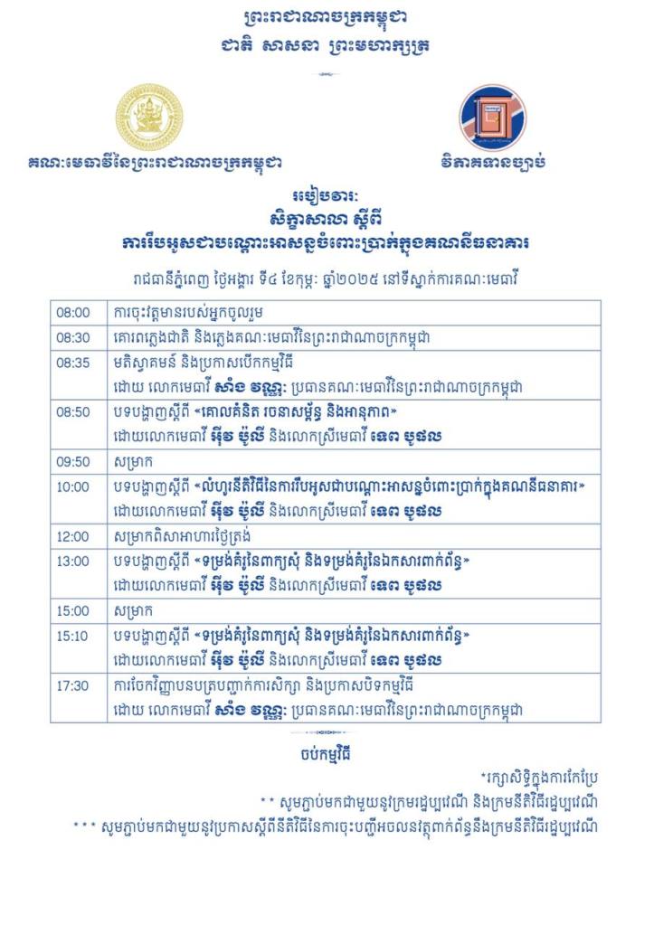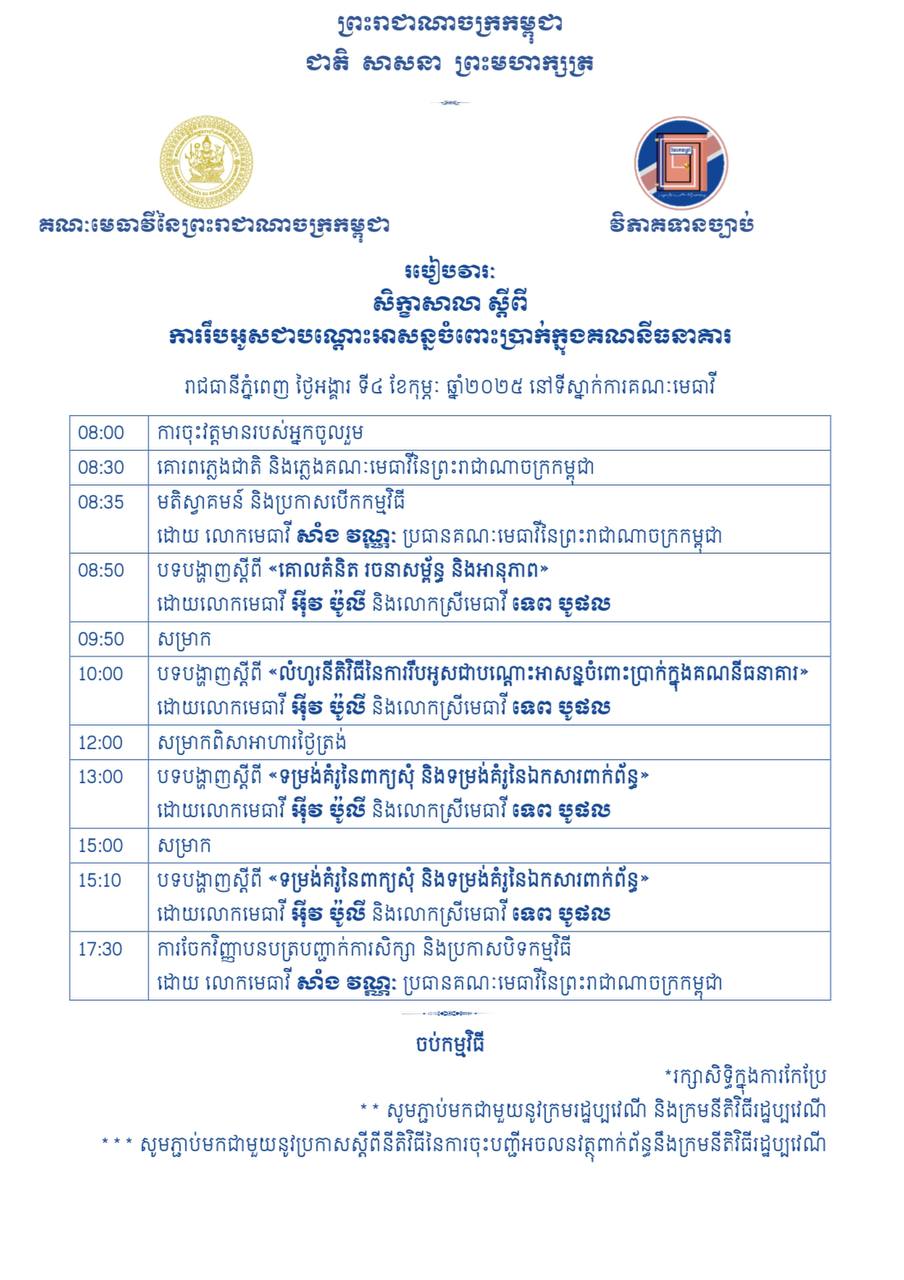 One thought on “សិក្ខាសាលា«ការរឹបអូសជាបណ្តោះអាសន្នចំពោះប្រាក់ក្នុងគណនីធនាគារ»”