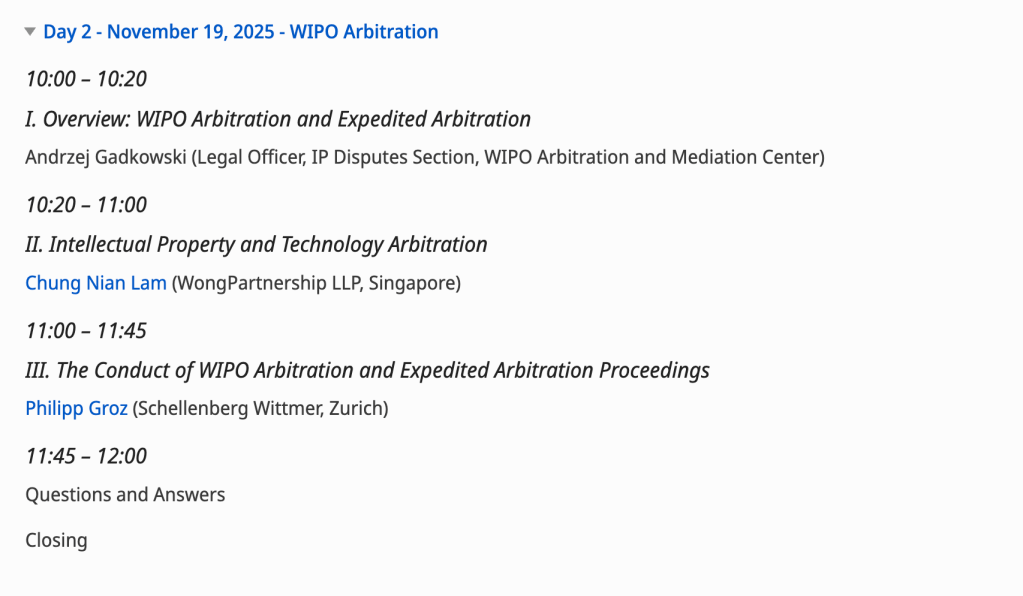សិក្ខាសាលា«មជ្ឈត្តការ (ការសម្រេចក្តីដោយមជ្ឈត្តករ ឬអាជ្ញាកណ្តាលពាណិជ្ជកម្ម) កម្មសិទ្ធិបញ្ញា»របស់អង្គការកម្មសិទ្ធិបញ្ញាពិភពលោក WIPO Arbitration Workshop បានប្រព្រឹត្តទៅនៅថ្ងៃនេះទី១៩-វិច្ឆិកា-២០២៥ តាមរយៈប្រព័ន្ធថ្នាលបណ្តុះបណ្តាលបច្ចេកវិទ្យា (Zoom Meeting) ពីប្រទេសស្វីស ក្រោមការរៀបចំដោយមជ្ឈមណ្ឌលសន្ធានកម្ម និងមជ្ឈត្តការរបស់អង្គការកម្មសិទ្ធិបញ្ជាពិភពលោក ។