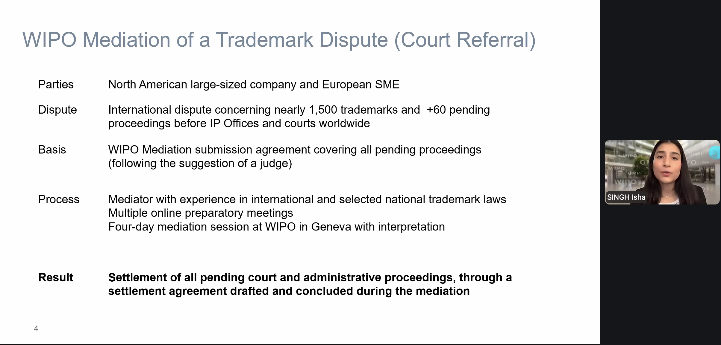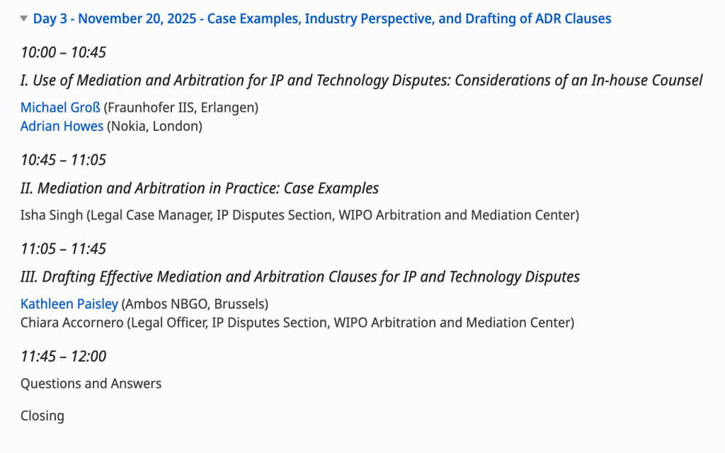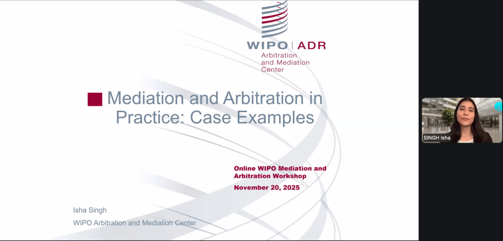 សិក្ខាសាលា«កិច្ចរបស់មេធាវី ពាក់ព័ន្ធនឹងសន្ធានកម្មនិងមជ្ឈត្តការ កម្មសិទ្ធិបញ្ញា»របស់អង្គការកម្មសិទ្ធិបញ្ញាពិភពលោក WIPO Lawyer to Mediation&Arbitration of IP&IT Workshop បានប្រព្រឹត្តទៅនៅថ្ងៃនេះទី២០-វិច្ឆិកា-២០២៥ តាមរយៈប្រព័ន្ធថ្នាលបណ្តុះបណ្តាលបច្ចេកវិទ្យា (Zoom Meeting) ពីប្រទេសស្វីស ក្រោមការរៀបចំដោយមជ្ឈមណ្ឌលសន្ធានកម្ម និងមជ្ឈត្តការរបស់អង្គការកម្មសិទ្ធិបញ្ជាពិភពលោក ។