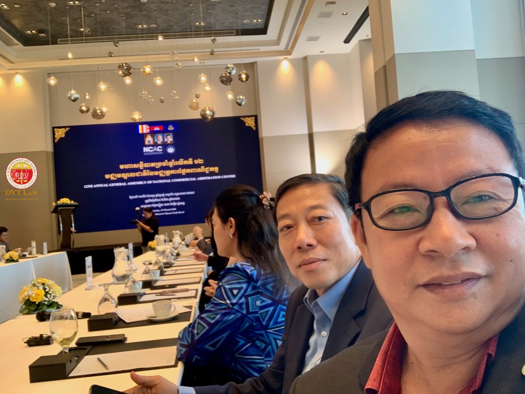 លោកមជ្ឈត្តករ អ៊ូច វុធ្ធី និងលោកមជ្ឈត្តករ ប៉ា ងួនគា កំពុងចូលរួមមហាសន្និបាតប្រចាំឆ្នាំលើកទី១២ របស់មជ្ឈមណ្ឌលជាតិនៃមជ្ឈត្តការផ្នែកពាណិជ្ជកម្ម (ម.ជ.ម.) នៅរាជធានីភ្នំពេញ Commercial Arbitrator OUCH Vutthy and Commercial Arbitrator PA Gnounkea are participating the 12th Annual General Assembly of National Commercial Arbitration Centre (NCAC) at Phnom Penh, CAMBODIA.