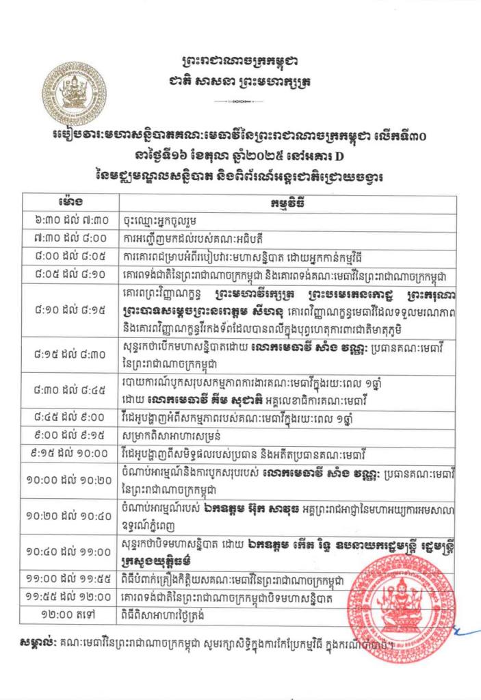របៀបវារៈនៃមហាសន្និបាតមានដូចតទៅ Its Agenda is as following: