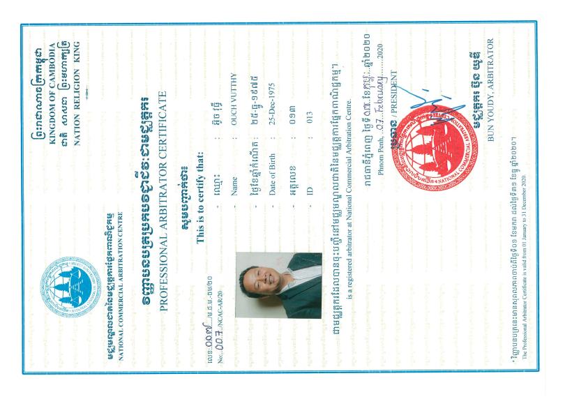 007-NCAC-AR-20_Ouch Vutthy 11/04/2020 2340 × 1654 1. អាជ្ញាប័ណ្ណ និងការទទួលស្គាល់ Licences & Accreditation. OVT Law-Professional in ADR & Litigation; Phone: (+855) 12 888 025; 016 999 027; 097 5888 025; Email: ovt.arbitrator@gmail.com; Website: www.ovtlaw.com Share on LinkedIn (Opens in new window) LinkedIn Share on X (Opens in new window) X Print (Opens in new window) Print Share on Telegram (Opens in new window) Telegram Share on Facebook (Opens in new window) Facebook Like Loading...