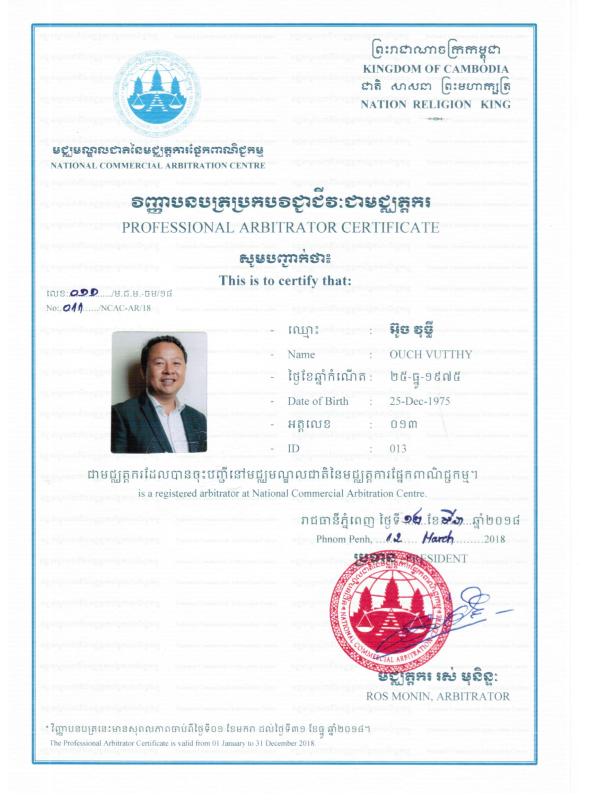 Certificates 001 17/03/2018 1700 × 2338 1. អាជ្ញាប័ណ្ណ និងការទទួលស្គាល់ Licences & Accreditation. OVT Law-Professional in ADR & Litigation; Phone: (+855) 12 888 025; 016 999 027; 097 5888 025; Email: ovt.arbitrator@gmail.com; Website: www.ovtlaw.com Share on LinkedIn (Opens in new window) LinkedIn Share on X (Opens in new window) X Print (Opens in new window) Print Share on Telegram (Opens in new window) Telegram Share on Facebook (Opens in new window) Facebook Like Loading...