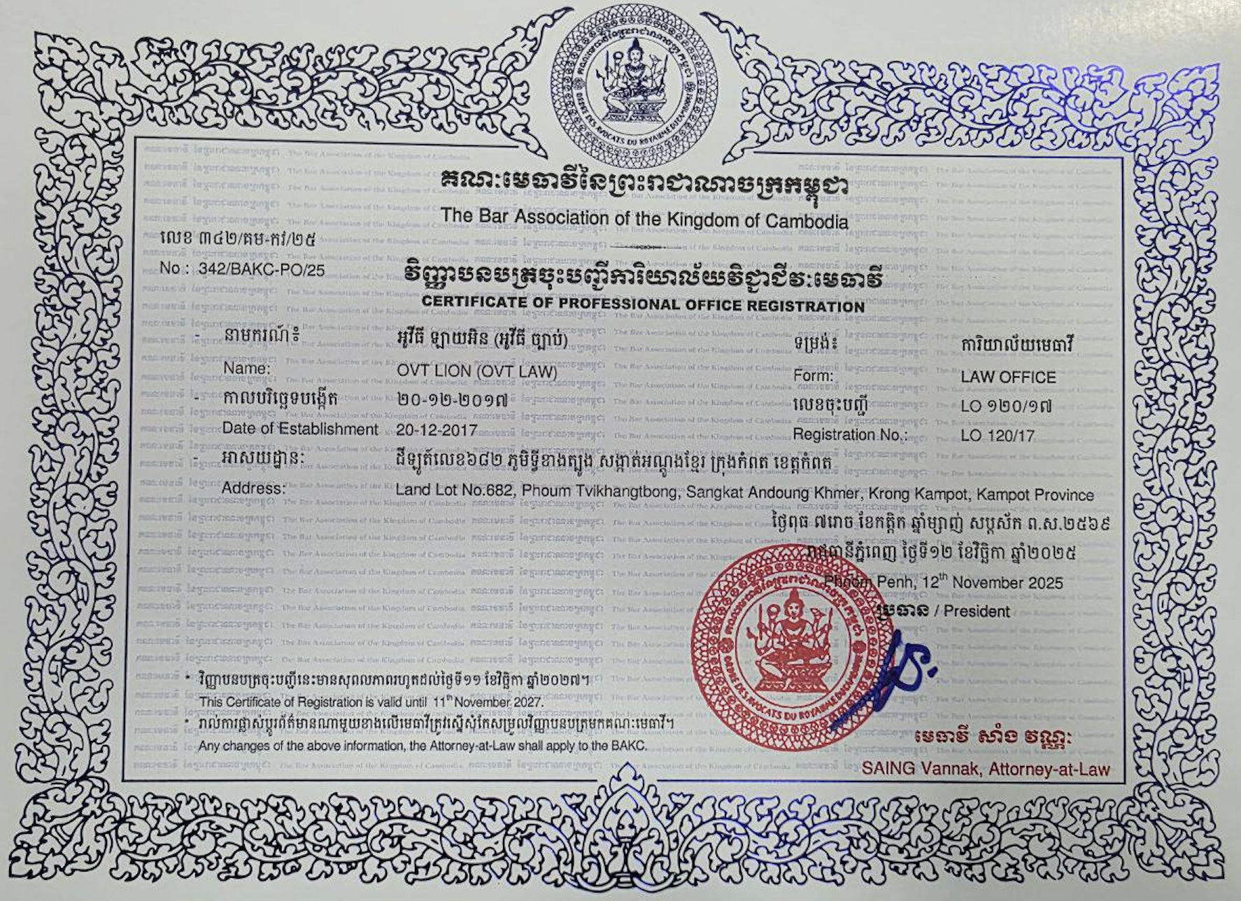 Image 21-11-25 at 09.15 21/11/2025 1774 × 1288 1. អាជ្ញាប័ណ្ណ និងការទទួលស្គាល់ Licences & Accreditation. OVT Law-Professional in ADR & Litigation; Phone: (+855) 12 888 025; 016 999 027; 097 5888 025; Email: ovt.arbitrator@gmail.com; Website: www.ovtlaw.com Share on LinkedIn (Opens in new window) LinkedIn Share on X (Opens in new window) X Print (Opens in new window) Print Share on Telegram (Opens in new window) Telegram Share on Facebook (Opens in new window) Facebook Like Loading...